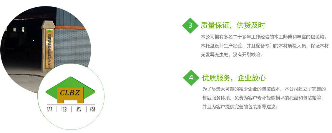 贛州楚林包裝材料有限公司創(chuàng)立于2008年,是一家集專業(yè)設計、生產和銷售為一體的實體型企業(yè),主要生產木箱、包裝箱、熏蒸托盤、鋼帶箱、鋼帶壓邊箱、圍板、木籠、木支架、線纜軸盤,以及各種免熏蒸包裝箱、托盤、棧板、卡板和實木家具等。本工廠(前身為南康區(qū)新世紀家具廠)具有十幾年的木質品包裝產品生產經(jīng)驗,特別是對重型機械或產品具有豐富的設計和包裝經(jīng)驗,保證客戶產品完好無損到達目的地。十幾年來,本工廠已為贛州地區(qū)多家知名實力企業(yè)提供了優(yōu)質、安全、可靠的包裝代理服務,產品廣泛應用到金屬新材料、稀土、電路板、新能源電池、電氣設備和數(shù)控化智能設備等行業(yè)。我廠同時可根據(jù)客戶的產品來樣和設計圖紙要求進行制作,不同的國...